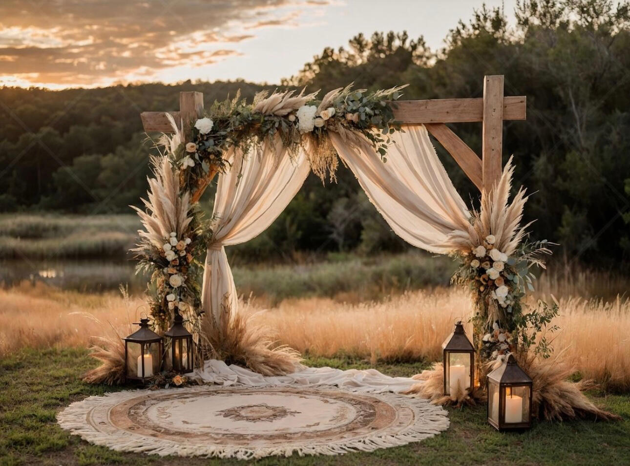 • Ceremony arch and rustic bench for two